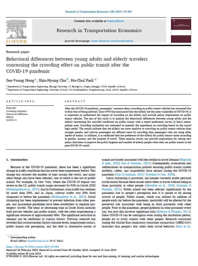 Keywords : Crowding Multiplier, Behavioral Difference, Elderly, COVID-19, Public Transit